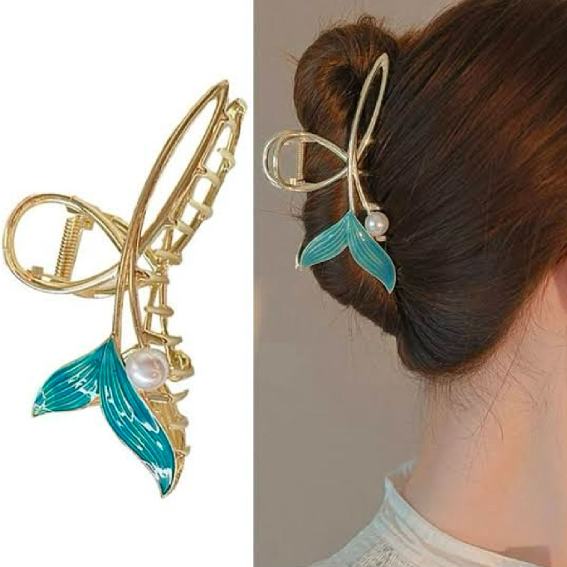 Diversa Fish Tail Claw Clip, Korean Aqua Blue Clutcher, Fancy Clutcher for Women, Metal Claw Clip for Girls, Trendy & Fashionable Clutcher Hair Accessories, Pack of 1
